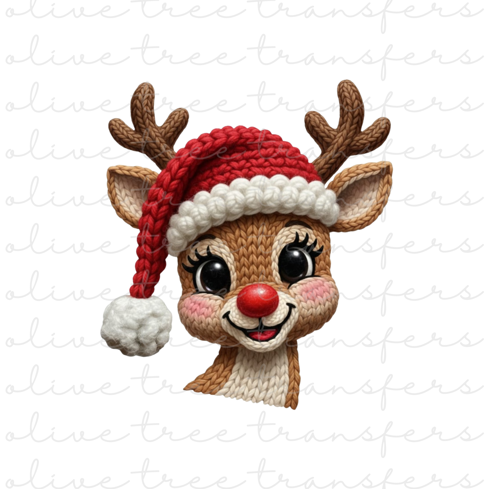 SUBLIMATION TRANSFER - Faux Yarn Reindeer with Santa Hat